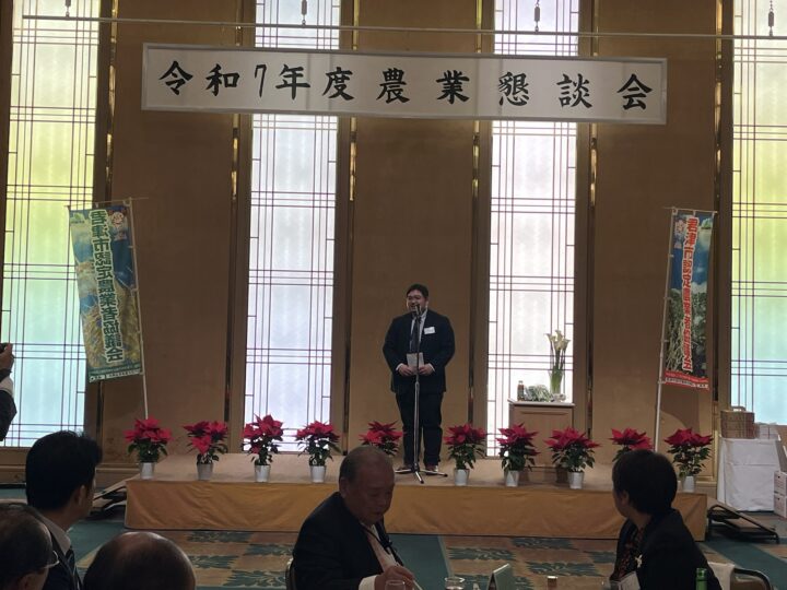 農業懇談会」を開催しました。80名のご来場に者に囲まれて盛大に開催されました。
