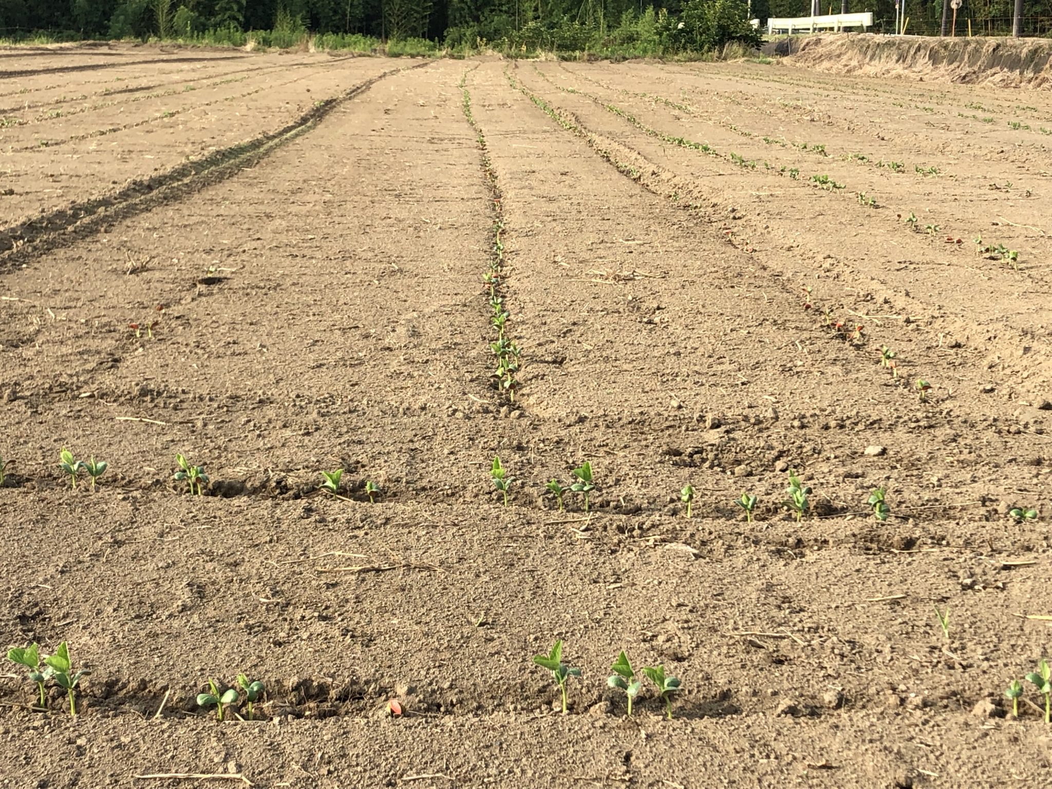 種蒔きから6日が経ちました。芽が出て来ました。 鳥獣被害も出ている様なので、今年は全ての圃場に電柵を張りました。