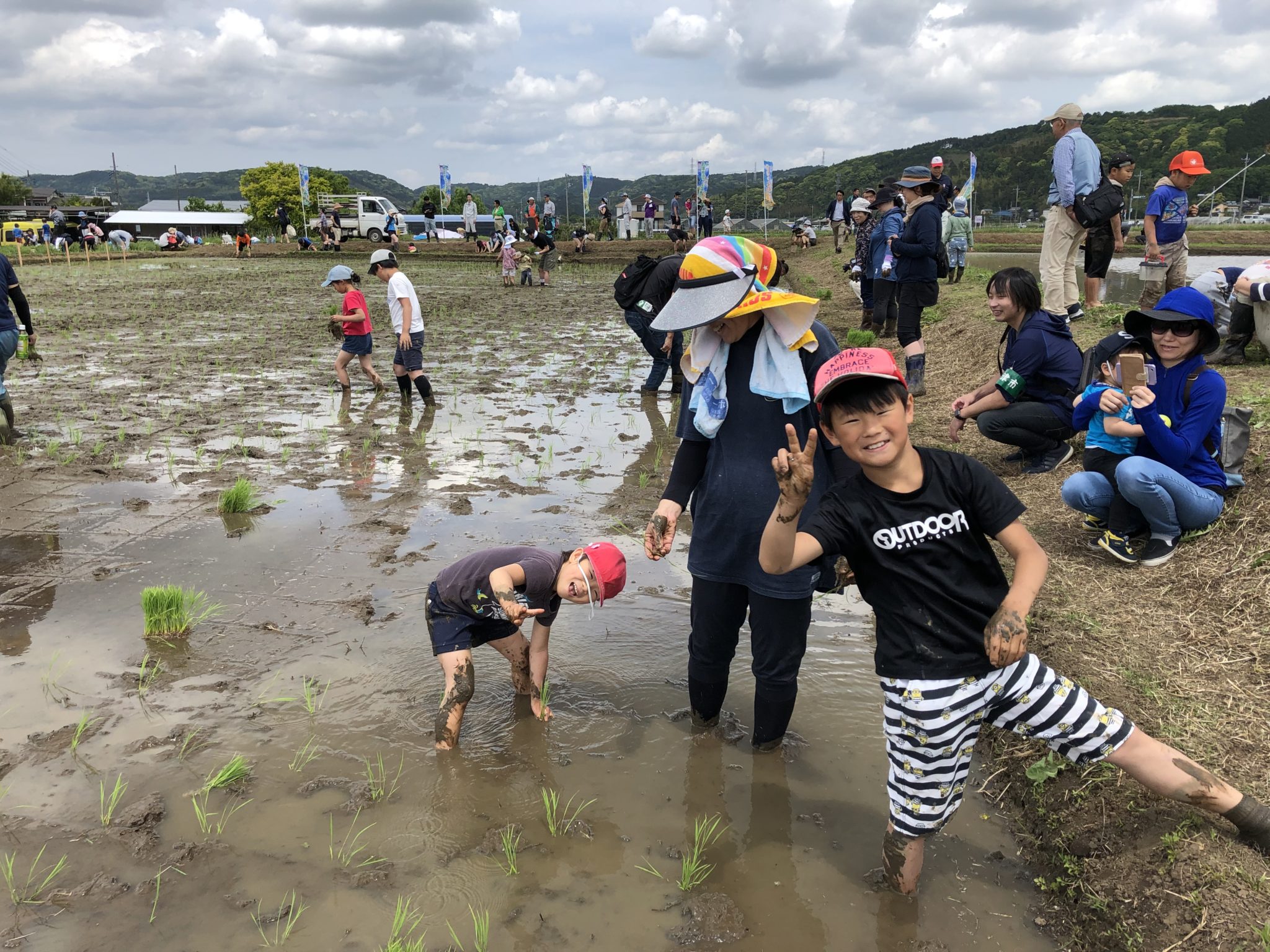 農業体験王国きみつ田植え 本日、農業体験王国きみつの田植えを行いました。朝から良い天気の元、185名の一般消費者とご来賓の皆様と我々スタッフ、総勢250名での盛大な田植えになりました。約1時間の田植えで、今年は例年より綺麗に植えられたと思います。