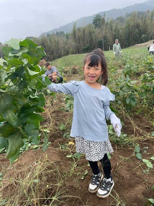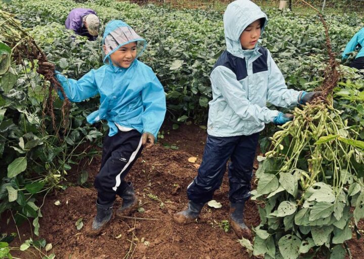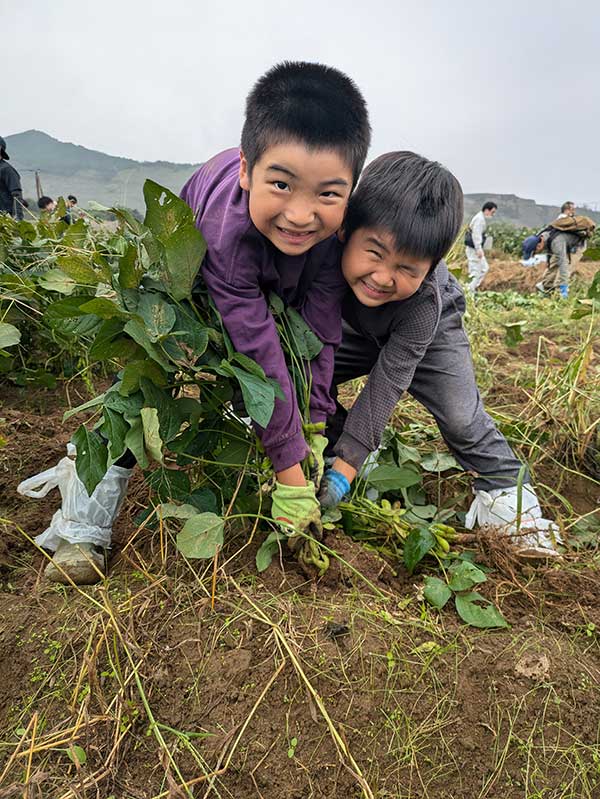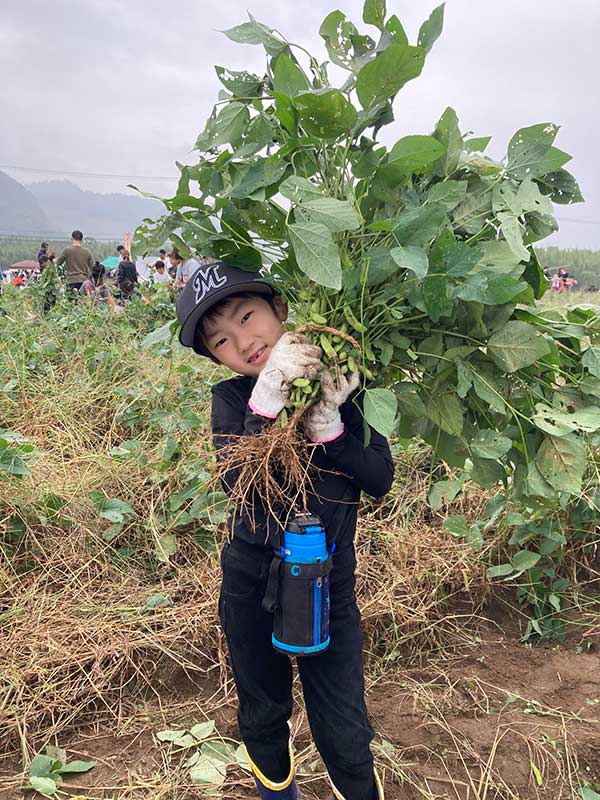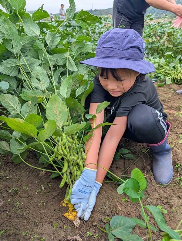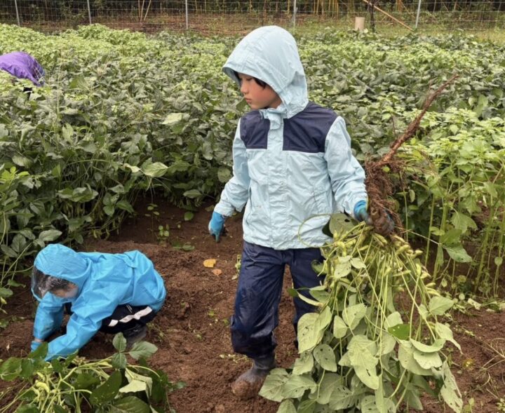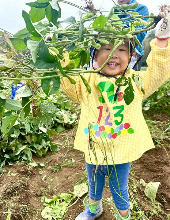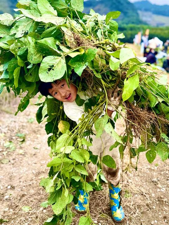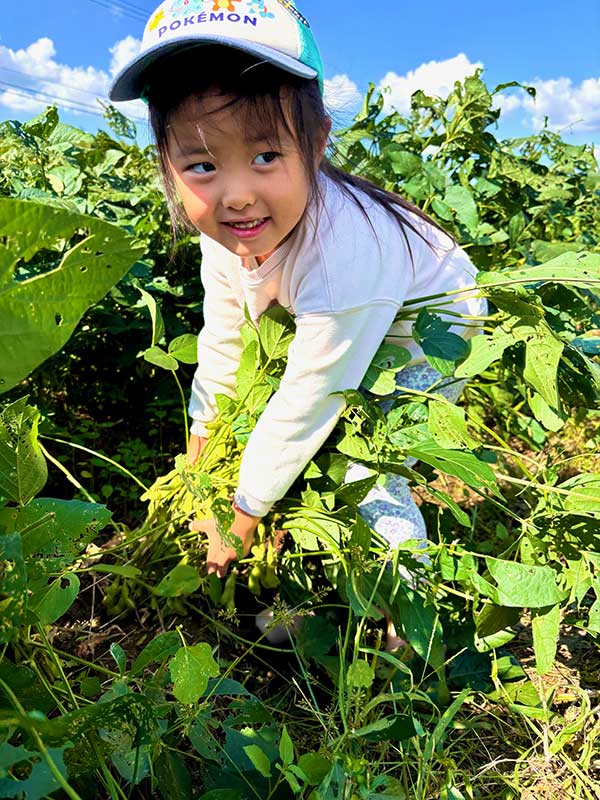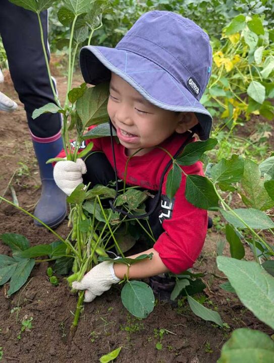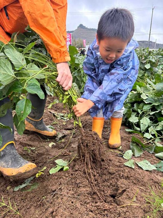 枝豆が大好きな兄弟は、毎年この収穫祭を楽しみにしています。「今回も美味しい枝豆穫るぞー♪」と張り切って参加しました。立派な枝豆、一人の力ではなかなか抜けず、二人で協力して頑張っていました!