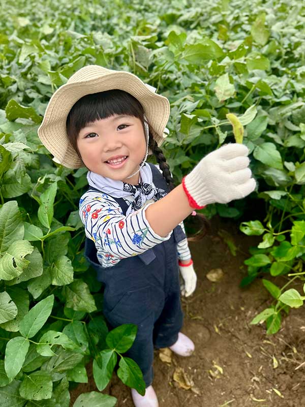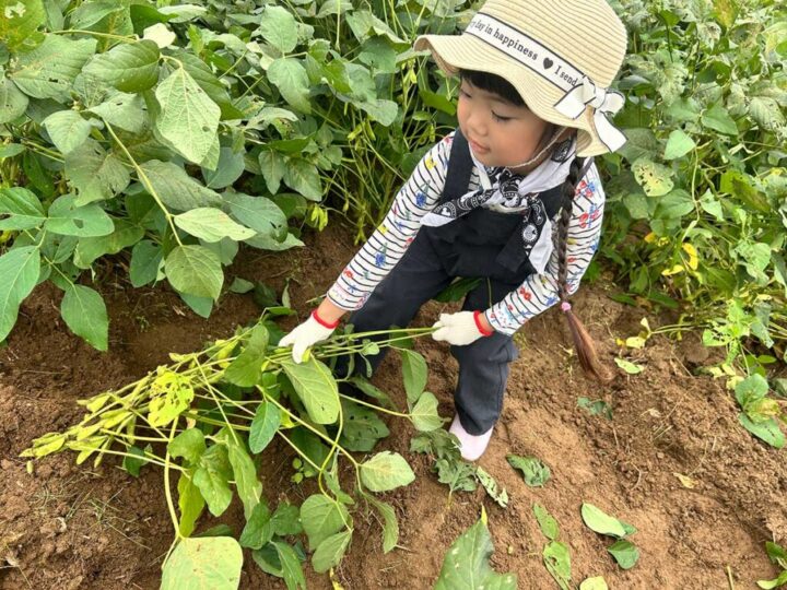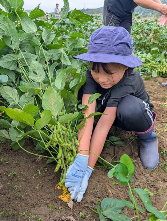 最初はママと。慣れてきたら自分1人で抜ける枝豆を見つけて、何度も挑戦!だんだんコツをつかんで沢山収穫できました!